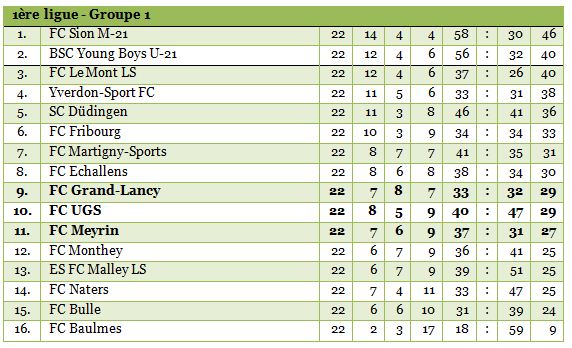 Au classement, Grand-Lancy gagne deux rangs en passant devant.. les deux autres formations genevoises, et devient ainsi la meilleure équipe cantonale de la division.