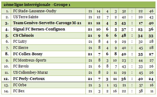 Au classement, Chênois reste dans le top cinq de la division, mais voit Signal Bernex et Team Genève prendre le large pour le titre honorifique de meilleure équipe genevoise.