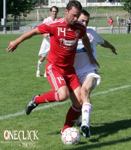 Dans ce genre de parties, l’enjeu tue assez régulièrement le jeu. La question n’a pas pu être posée ce dimanche après-midi puisque sur la première incursion du match, Derrer, esseulé, s’avance aux vingt mètres et décoche une frappe chirurgicale qui va se loger dans la lucarne de Berton, impuissant sur ce coup. L’entame des visiteurs est parfaite à en voir les mines réjouies sur le banc lancéen.
