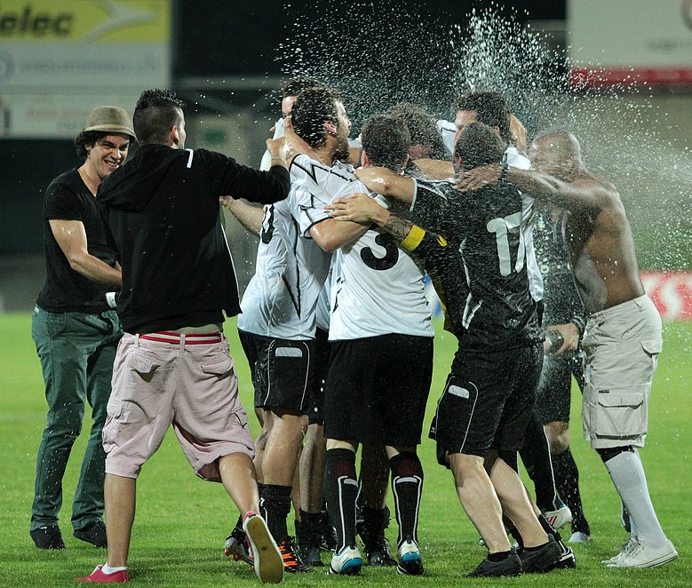 Les joueurs d’US Carouge fêtent leur promotion en 3ème ligue (Photo: IV Sport)