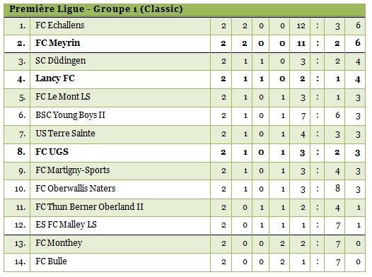 2ème journée / Victorieux à Monthey, les Meyrinois se partagent la tête avec Echallens. Lancy est tenu en échec tandis qu’UGS rentre de Guin avec une défaite.