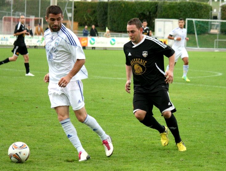 Le buteur verniolan, Arifi, poursuivi par Dupraz