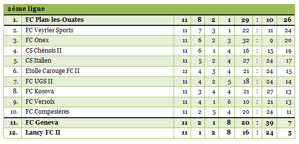 Il est temps de faire le point sur le premier tour de 2ème ligue qui a vu Plan-les-Ouates terminer en tête, suivi du néo-promu Veyrier. Lancy II et Geneva passeront l’hiver sous la barre.