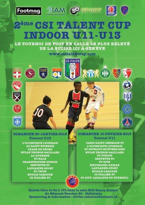Rendez-vous donc les dimanches 20 janvier et 10 février 2013 à la Salle Henry-Dunant. Pour plus d’informations, visitez le site internet du tournoi www.csitalentcup.com