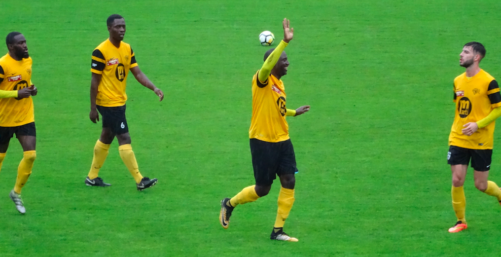 La dernière demi-heure se transforme en va et vient continu avec une équipe locale évoluant avec cinq joueurs à vocation offensive. Les visiteurs profitent des espaces et se créent plusieurs occasions en contre avant de définitivement prendre le large. Aïachi profite des largesses défensives des Jaunes avant de tenter sa chance. Sa frappe est renvoyée dans les pieds de l’ancien meyrinois Nsilu qui ne se fait pas prier pour assurer la victoire de son équipe (76′, 2-4).