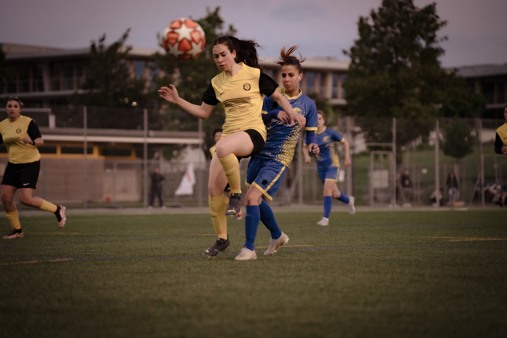 Après avoir assuré son retour en 3ème ligue ce week-end, Meyrin jouait cette demi-finale de Coupe genevoise sans pression. “L’objectif pour nous a déjà été atteint”, a rappelé la capitaine Louise Brignoni après la rencontre. Face au tenant du titre, les Jaune et Noir ont sans surprises adopté une approche assez prudente, qui a longtemps porté ses fruits. Ce n’est d’ailleurs que sur coup de pied arrêté que les visiteuses ont ouvert la marque. Le coup franc lointain de Carmeni a été repris dans le bon timing par Mota (68, 0-1).