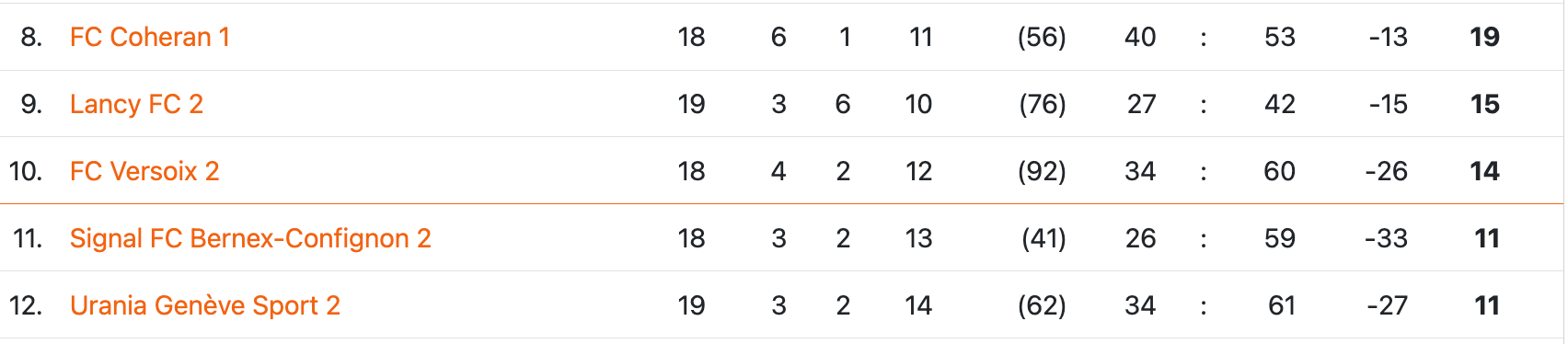 Le match avancé entre UGS II et Lancy II était décisif pour la course au maintien dans le groupe 1 de 3ème ligue. Au bout des nonante minutes, Lancy est parvenu à rester à 4 longueurs d’UGS II, en repartant de Frontenex avec un nul. Un résultat qui peut aller pour les Lancéens (qui gardent 4 longueurs d’avance sur la zone rouge), mais qui ne permet pas à UGS II de quitter la dernière place. Les résultats des Deux de Bernex (contre Coheran) et de Versoix (à Rhexia) de dimanche seront bien entendu à surveiller.