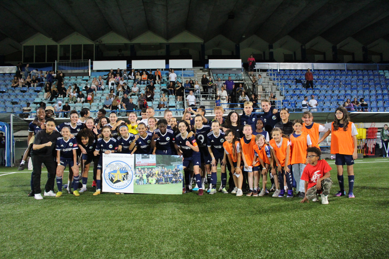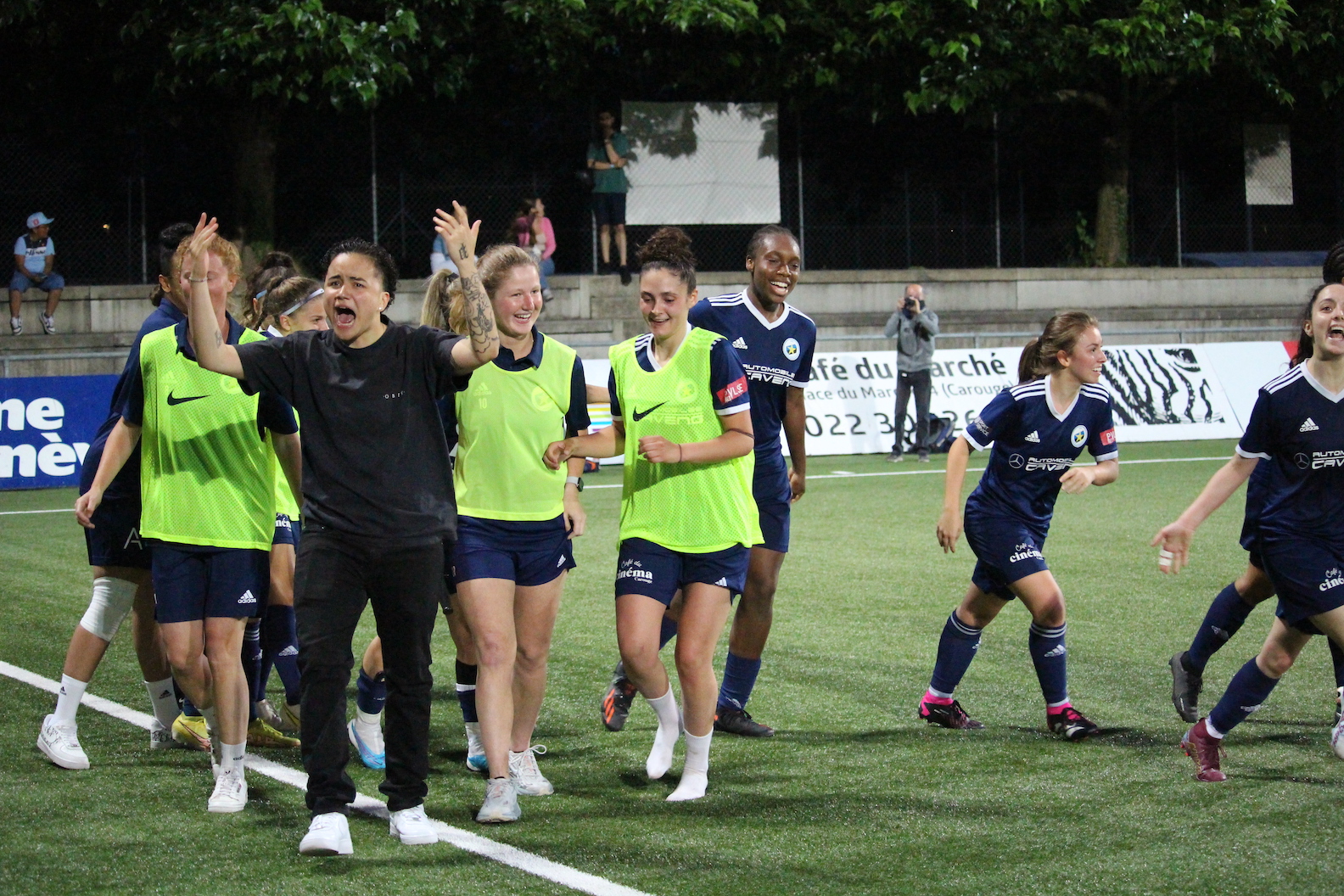 Et voilà le travail. Les Féminines d’Etoile Carouge évolueront bel et bien en LNB l’année prochaine, le second échelon national. Après des dernières semaines difficiles lors desquelles l’équipe carougeoise avait manqué la dernière marche, le travail a cette fois-ci été conclu avec brio, devant une Fontenette bien garnie. “On a fait exprès en fait, on voulait finir à la maison”, souriait la triple buteuse Giulia Pezzotta après la rencontre. Une promotion qui vient récompenser un groupe de joueuses investies et méritantes : “C’est incroyable, déclarait la capitaine Ferrari quelques minutes après le coup de sifflet final. C’est grâce à tous les sacrifices qu’on a fait cette saison. On en rêve toutes depuis petites, et c’est pour des moments comme ça qu’on a voulu faire du foot”.