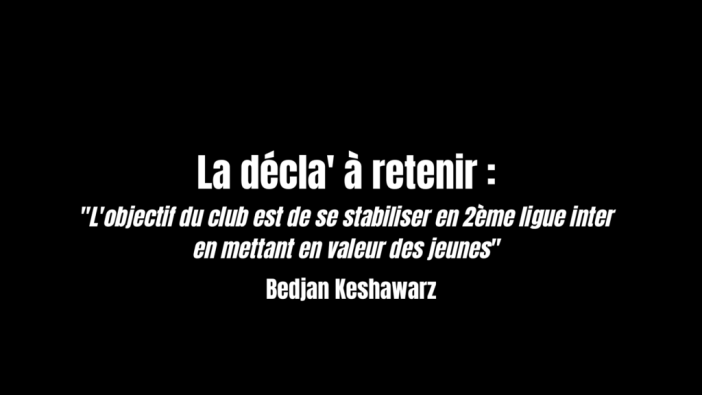 Après son expérience récente au Grand-Saconnex, Bedjan Keshawarz se lance donc dans un tout autre projet. L’entraîneur détenteur du diplôme A n’est cependant pas étranger au travail avec des jeunes joueurs. “Je vais pouvoir m’appuyer sur mes 7 ans en France, passés notamment dans la formation des juniors, explique-t-il. Mes expériences en 1ère ligue comme assistant de Bojan Dimic à Lancy (2014-15, ndlr) puis à Grand-Saconnex m’aideront elles à essayer d’amener davantage d’exigence et de rigueur pour faire progresser ces jeunes joueurs”.
