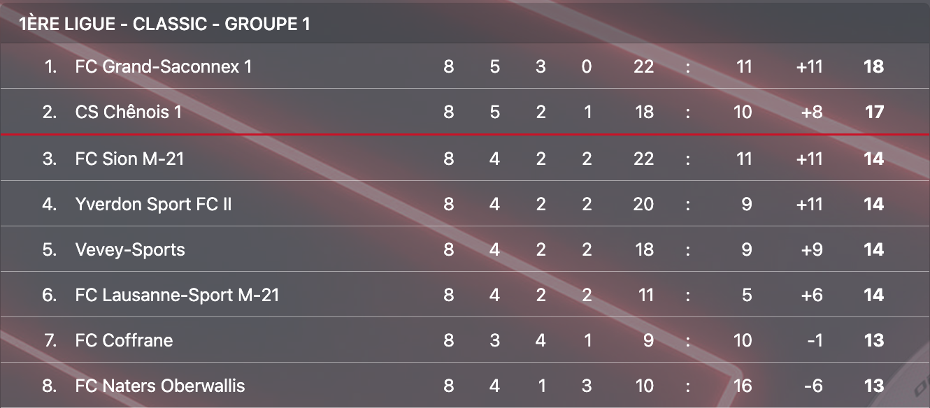 S’ils n’ont pas su conserver les deux points qui leur auraient permis de prendre une place de leader somme toute anecdotique après huit journées, les pensionnaires du Stade des Trois-Chêne peuvent au moins se féliciter d’avoir obtenu quelque chose d’un match où il n’ont jamais vraiment trouvé la maîtrise du jeu. Chênois est désormais attendu ce dimanche dans le canton de Neuchâtel pour y affronter l’autre équipe de la région, le FC Coffrane.