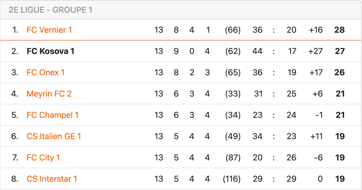Au vu des résultats, il y a en effet de quoi être optimiste. Malgré la défaite lors du dernier match de 2023 contre le FC Onex (la quatrième en championnat, ndlr), les Kosovares restent largement dans le coup, à une unité du leader verniolan. “Mathématiquement, si on gagne chaque week-end, on termine premier”, fait simplement remarquer l’entraîneur des Rouge et Noir. “Je ne vois pas plus loin que le prochain match”.