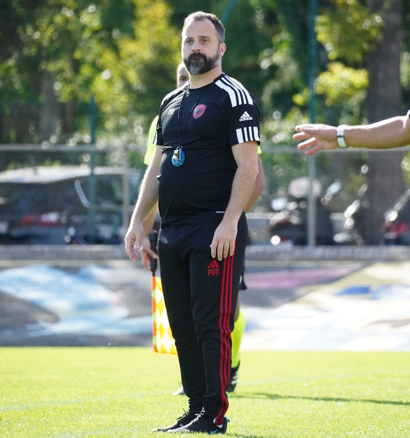 Pierre-Emmanuel Dupraz est un enfant du pays. Né du côté de Gaillard dans une famille sportive, il découvre vite les plaisirs du ballon rond et évolue pendant 5 ans en National, la 3ème division française, avec l’Olympique Croix-de-Savoie (devenu ETG FC, puis Evian Thonon Grand Genève FC). Après un passage en 2ème ligue du côté de Plan-les-Ouates, l’ex milieu de terrain sent que sa place n’est plus dans une équipe première. “À la fin, en 2ème ligue, je n’étais qu’avec des jeunes de 17, 18 ans”, confesse l’entraîneur du FC Kosova. “On n’était pas dans la même dynamique. J’ai senti que je n’étais plus trop à ma place dans une équipe d’actifs”. Pierre-Emmanuel Dupraz passe alors par les Seniors avant de raccrocher les crampons à l’âge de 34 ans. C’est là que le banc commence à l’attirer.