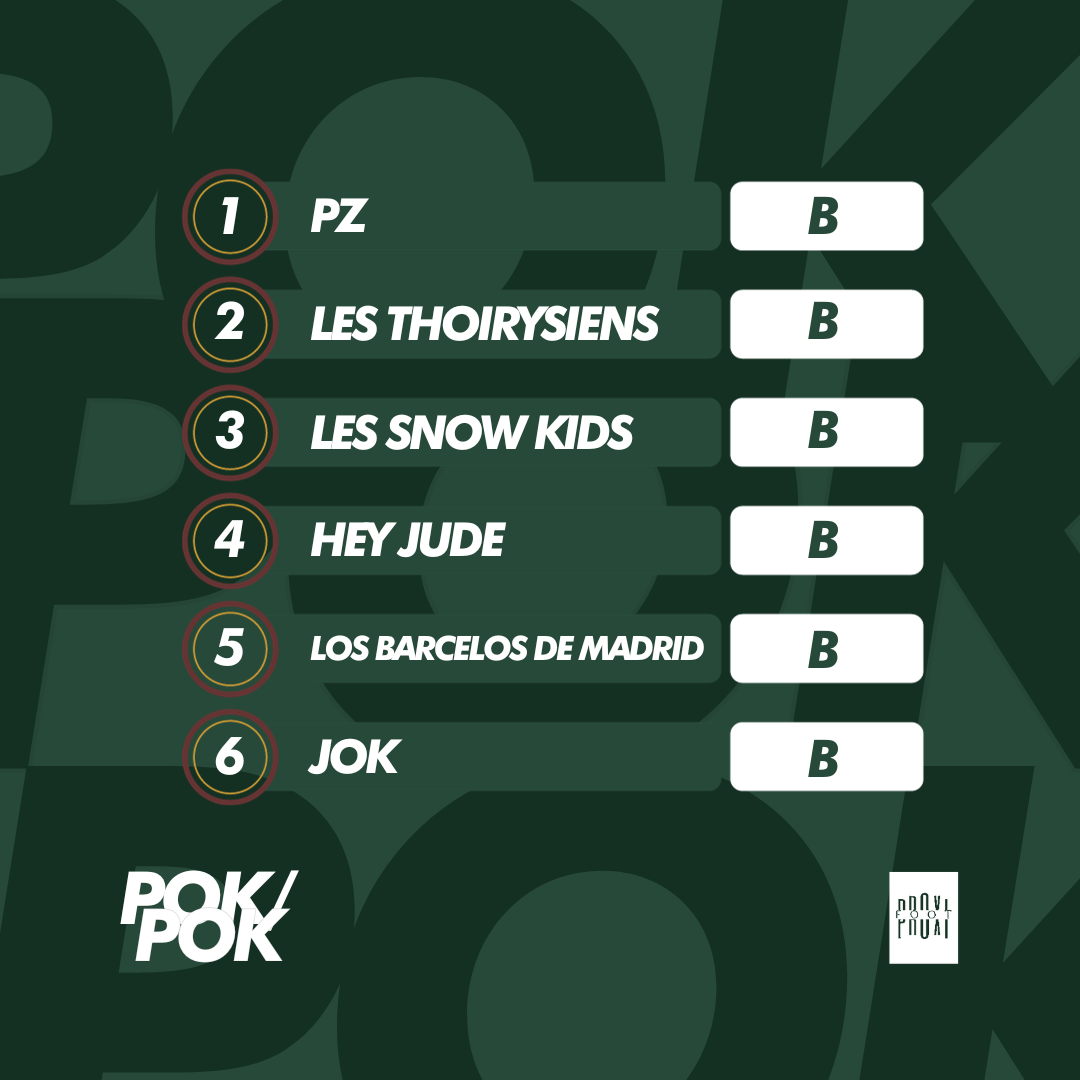 - 8 tables de POK seront disponibles. Un match par poule par créneau horaire. Coup d’envoi du match suivant prévu chaque 15 minutes.