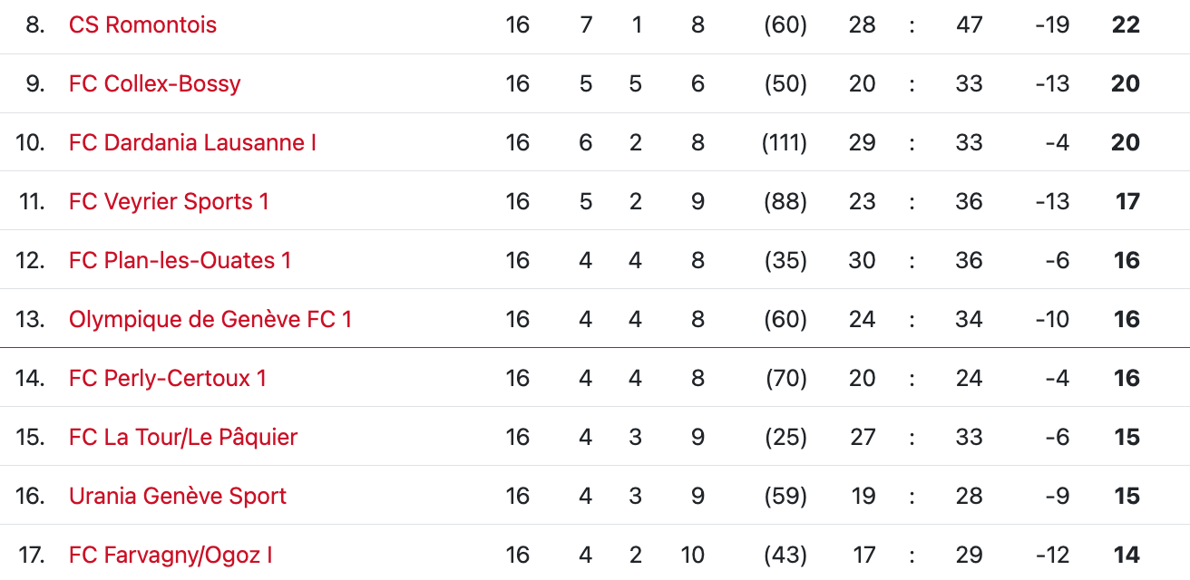 L’OG est l’équipe genevoise de la ligue qui a connu le plus de remaniements cet hiver, alors que les résultats étaient pourtant meilleurs sur la fin du premier tour. “On a fait un recrutement qui doit nous permettre de faire le nécessaire pour nous maintenir”, observe l’entraîneur Yorick Guekam. “Par contre, c’est clair que par rapport à nos concurrents, on part de derrière. Avec ces nombreux changements (14 arrivées et 14 départs, ndlr), il sera essentiel que l’on trouve vite des automatismes”.