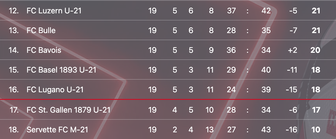 Rappelons que pendant la trêve, les M-21 du Servette FC ont fait signer quatre nouvelles recrues de plus de 21 ans : Yanis Lahiouel, Rafidine Abdullah, Nikita Vlasenko et Sinclair Baddy Dega. Ces joueurs, importants de par leur expertise et leurs expériences passées à ces niveaux, n’ont pas pu faire la différence en cette première rencontre, malgré la titularisation de trois d’entre eux. “Aujourd’hui, c’était un échec collectif, je crois que même eux ont été en difficulté”, a commenté leur entraîneur.