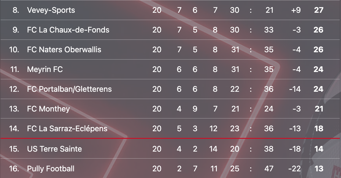 Le travail était cependant encore loin d’être fait à la mi-temps. Après avoir égaré des points dans des rencontres aux scénarios similaires contre Sion et Chênois, les hommes de Domingos Ribeiro savaient de quoi se méfier. D’autant plus contre une équipe d’Echallens dont les individualités ont de quoi faire pâlir n’importe quelle équipe de la ligue. “Mais cette fois, on s’est dit qu’on ne voulait pas refaire les mêmes erreurs”, explique Matteo Regillo. Le fameux match complet évoqué plus tôt a en effet été réussi par les pensionnaires des Arbères.