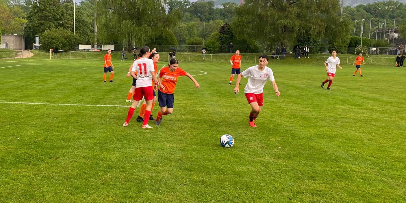 Champel s’est imposé sur le score de 5-4 face au FC Aïre-le-Lignon. Lara Sekularac (FC Champel) et Leona Pira (FC Aïre-le-Lignon) se sont offertes un triplé chacune. À l’heure du thé, une seule longueur séparait les 2 formations grâce à une réussite des Orange inscrite 3 minutes avant la pause (2-1).