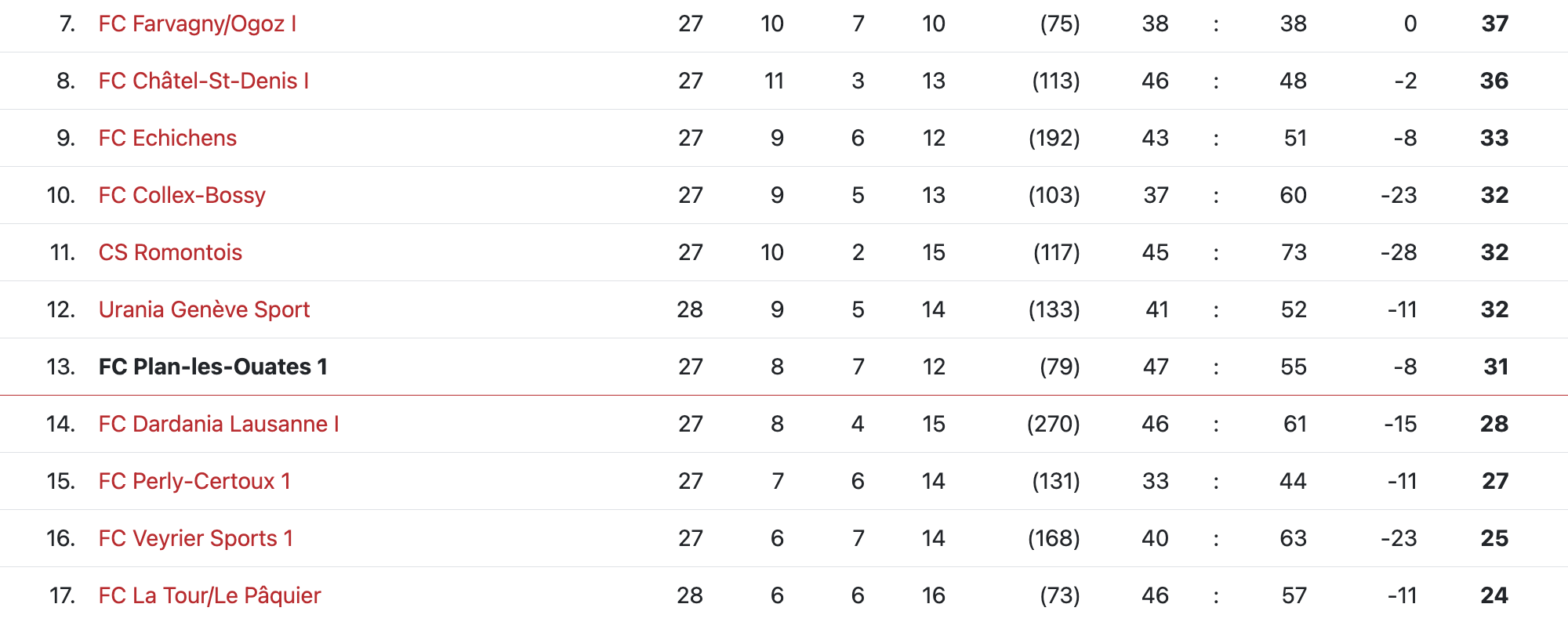 En cas de succès samedi contre La Tour, les hommes de Yoan Gruffaz devraient logiquement quitter la zone de relégation. Rappelons que le maintien de PLO, comme des autres Genevois de 2ème ligue inter, profiterait à tout le football de notre canton.