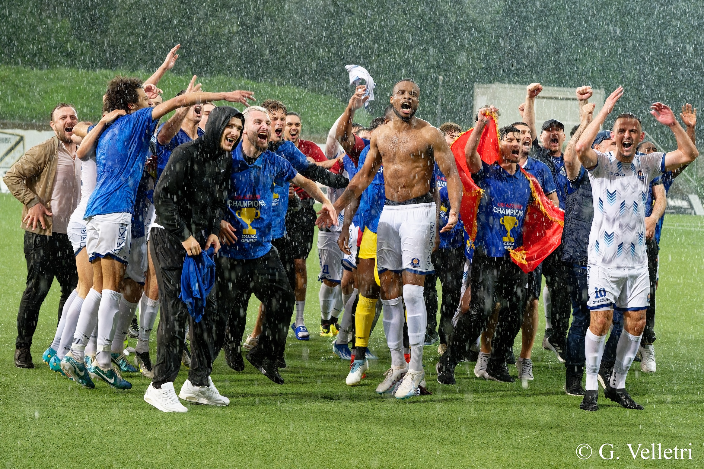 Azzurri a fêté sa promotion sous le déluge. Photo : Giuseppe Velletri.