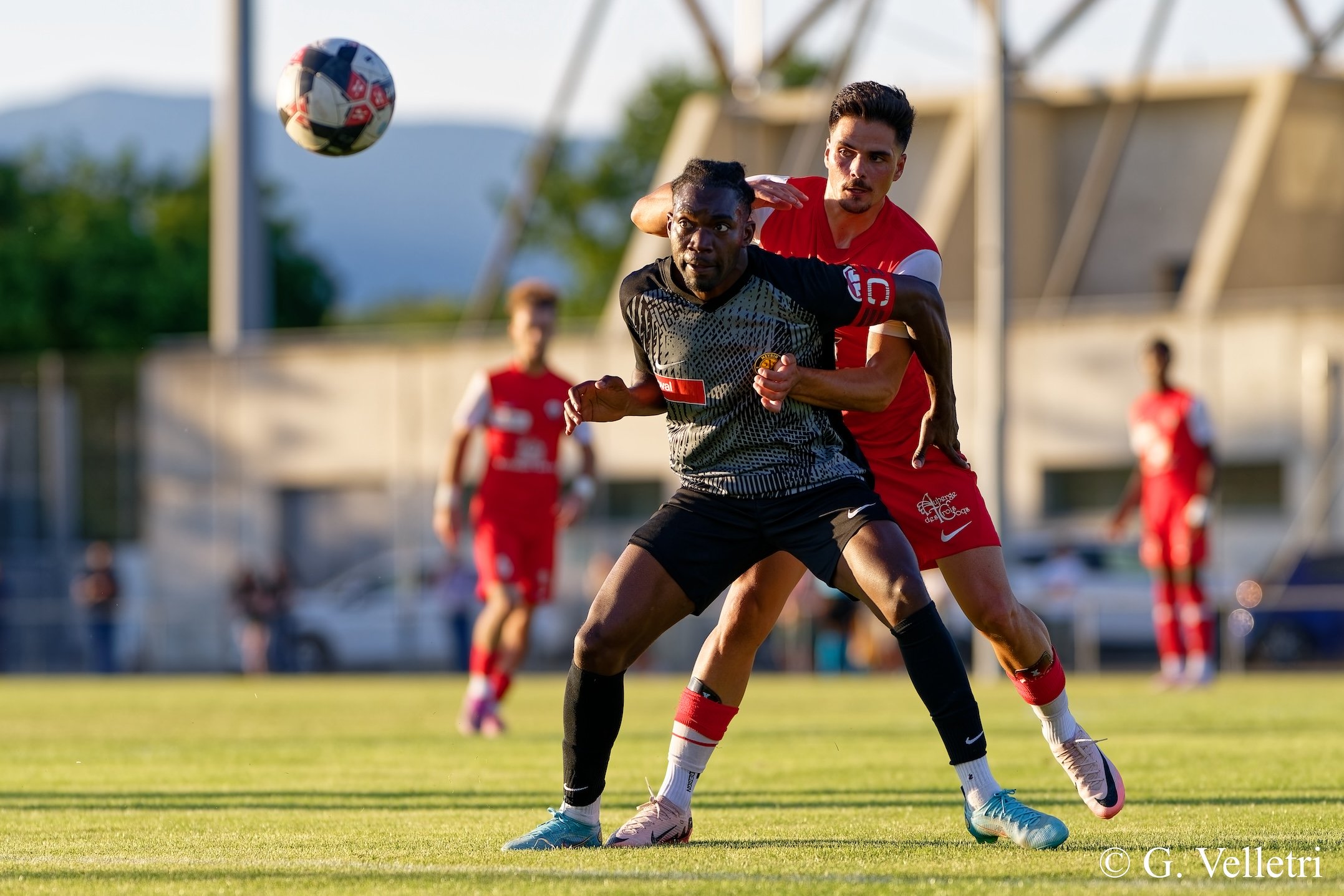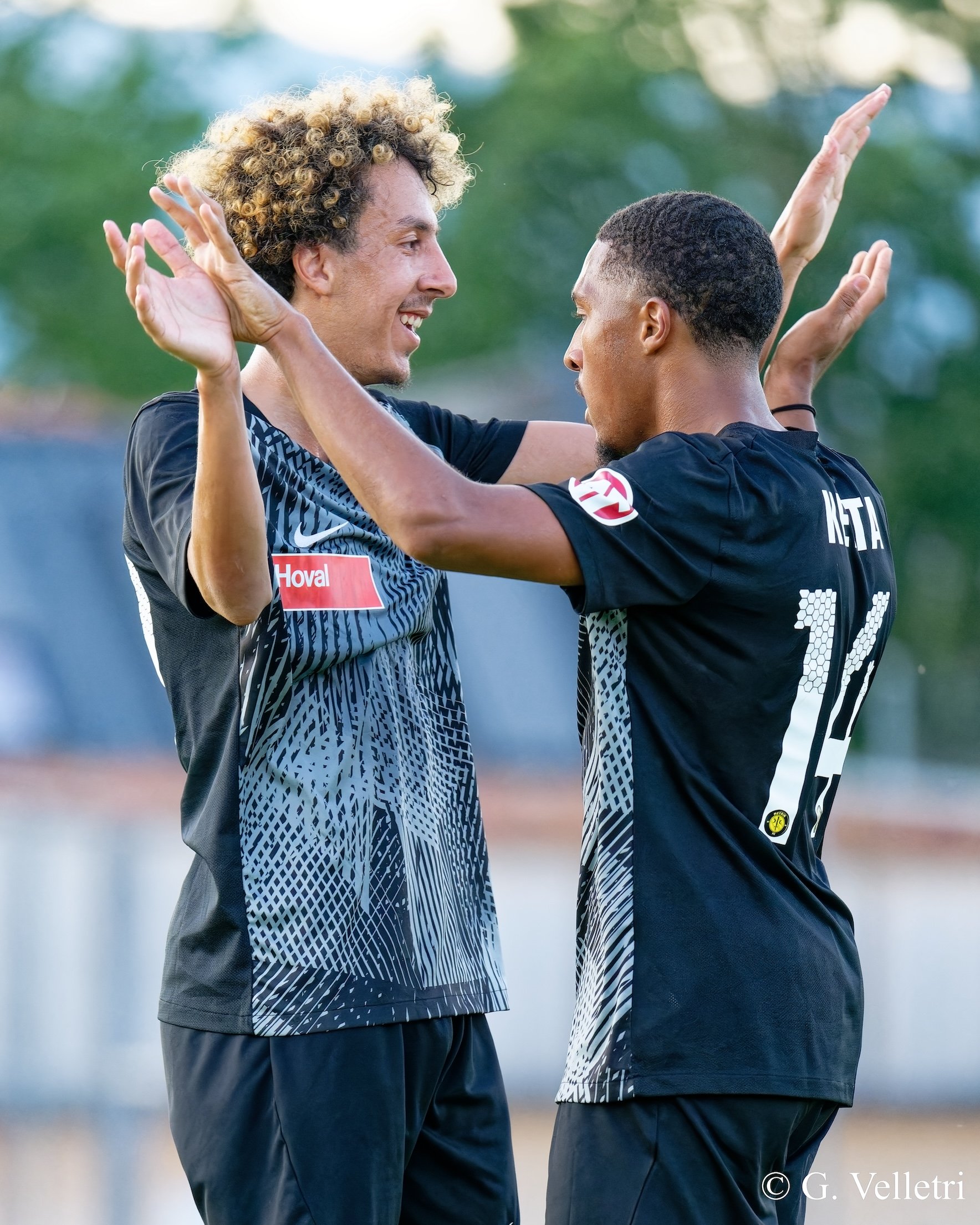 Mohammed Boutaleb (24) et Benjamin Keita (19), deux atouts offensifs du Meyrin FC. Photo : Giuseppe Velletri
