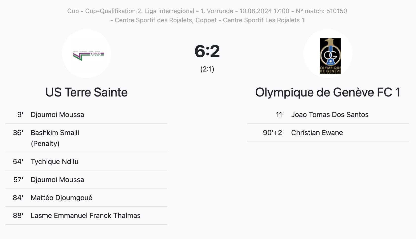 L’OG a été largement battu par l’US Terre Sainte lors du premier tour préliminaire de la Coupe Suisse 2025-26.