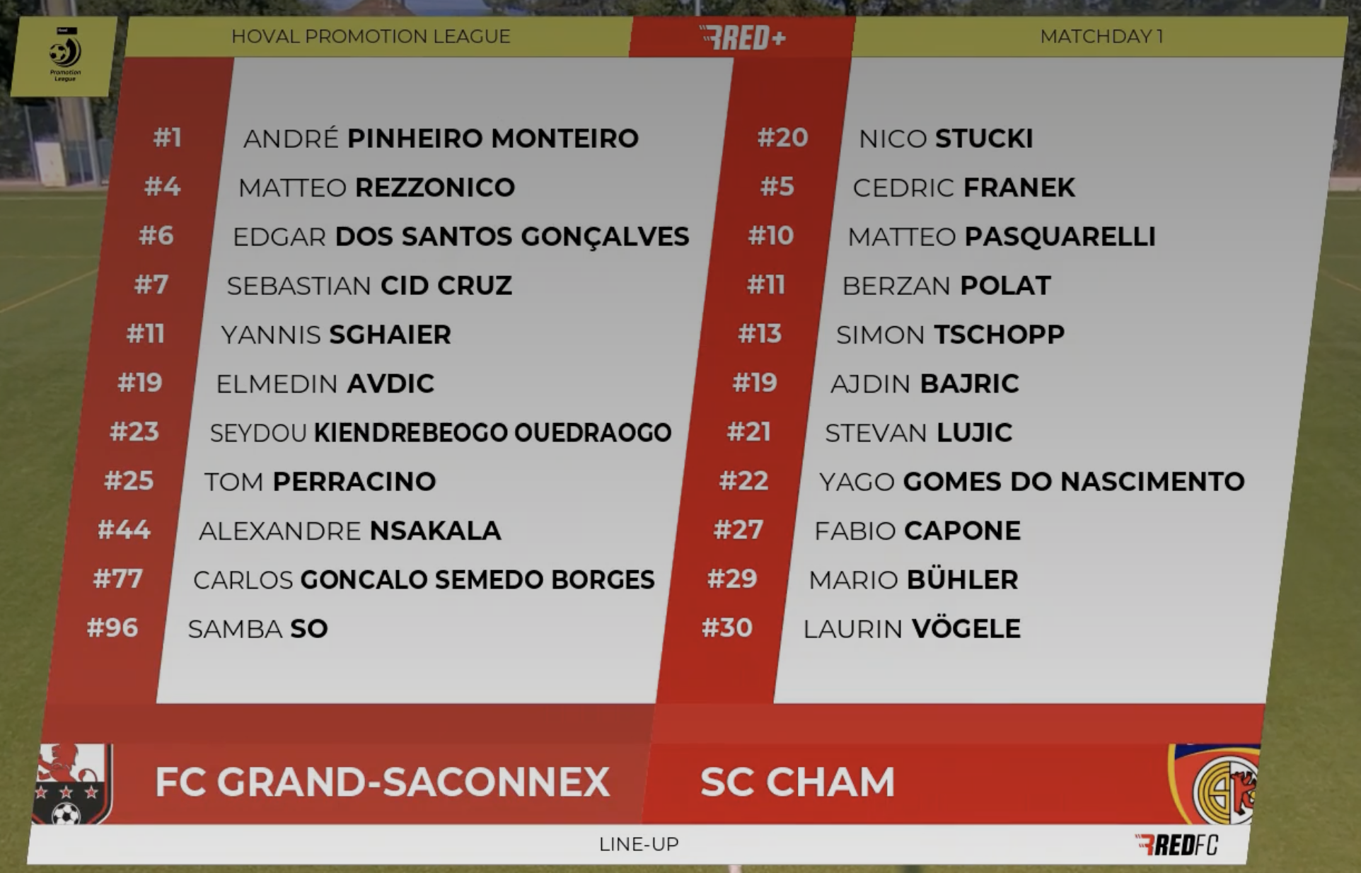 Premier match et premier point en Promotion League pour Grand-Saconnex. La formation entraînée par Jean-Michel Aeby a obtenu le nul contre Cham au Blanché. Menés jusqu’à un quart d’heure du terme, les Genevois ont remis les compteurs à égalité sur une balle arrêtée tirée par Cid, déviée par Rezzonico et enfin mise au fond par Niang (77′, 1-1).