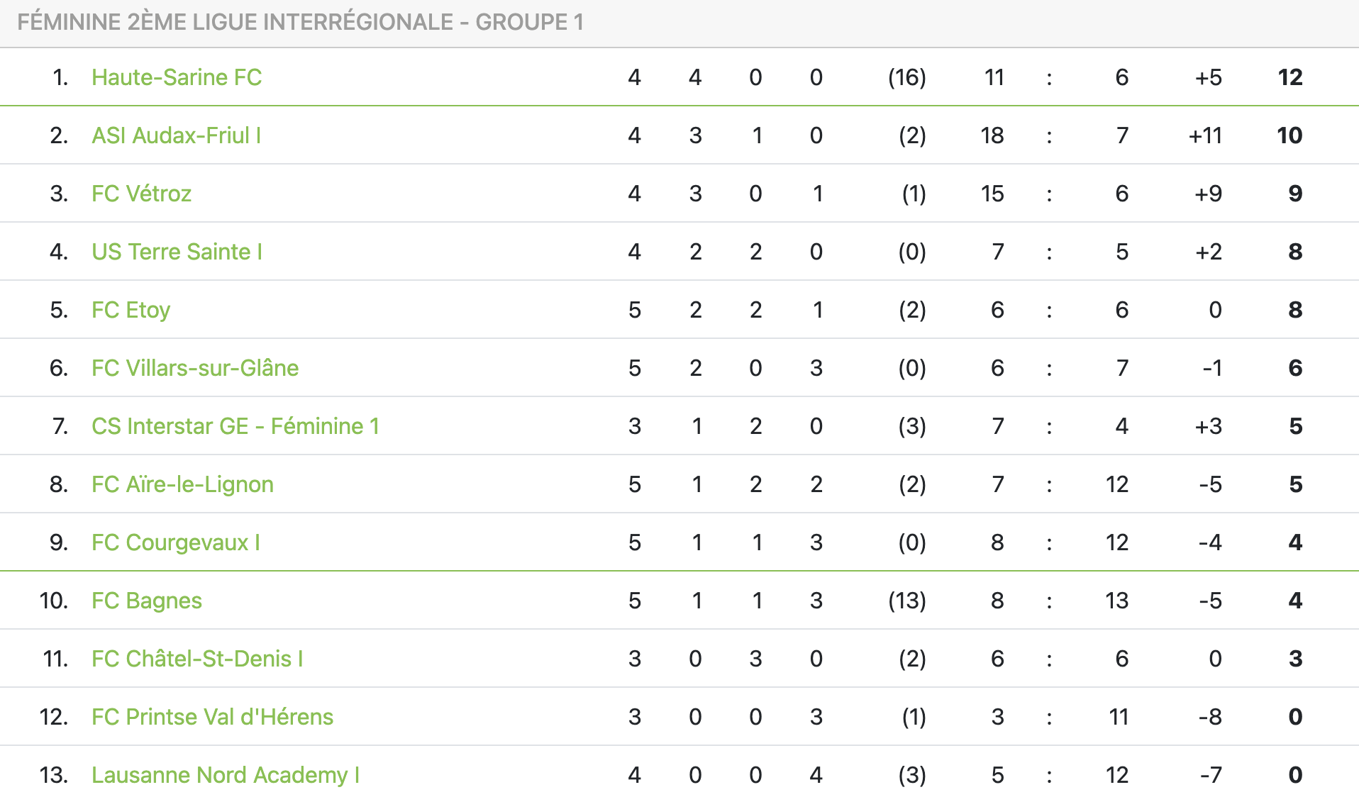 Varembé, synthétiqueInterstar (4-3-3) : Vieira – Bussard, A.Silva, Varonier ©, Ribeiro – Pion, L.Silva, J.De Oliveira – S.De Oliveira, Diallo, Lathion.
