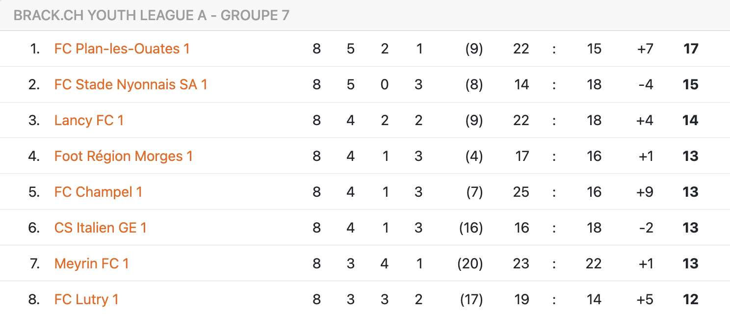Grâce à cette victoire, Plan-les-Ouates s’empare de la première place du championnat. Une belle récompense, bien que celle-ci ne soit pas un objectif en soi, comme l’a précisé l’entraîneur Michael Bleve « Nous, on ne vise pas du tout le fait d’être champions ou pas champions. Le but, c’est de former des joueurs pour les faire intégrer la première équipe ».
