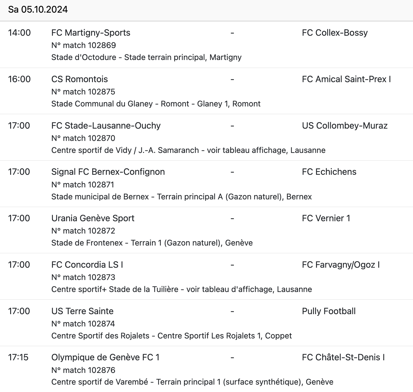En 2ème ligue inter, les duels entre Collex et l’OG (1-1), Bernex et Vernier (2-2) ainsi que le déplacement d’UGS à Farvagny (1-1) ont débouché sur des scores d’égalité.