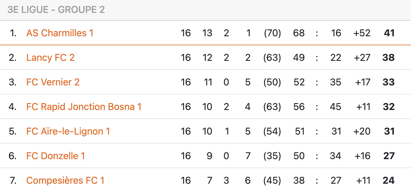Avec ce résultat, l’AS Charmilles reste donc leader du groupe II à l’issue de la 16ème journée de 3ème ligue. Lancy II, qui était champion d’automne, n’est que 3 points derrière, avec encore une confrontation directe entre les deux formations prévue le 27 avril. “Le seul danger, c’est nous”, a glissé Behar Bajrami à l’interview. “On parle de Lancy, mais ils font leur championnat, et nous faisons le nôtre. Si on fait 11 matchs et 33 points, ils peuvent faire ce qu’ils veulent derrière, on sera toujours devant !“.