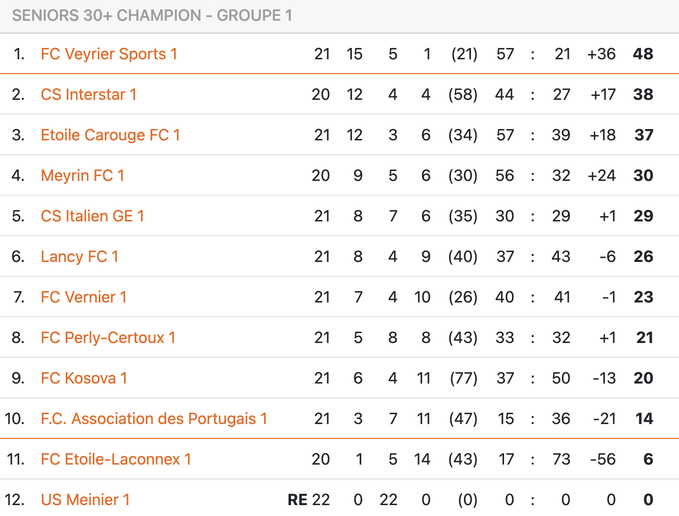 Les 30+ de Veyrier ont terminé à la première place du groupe « champion » pour la troisième saison consécutive.