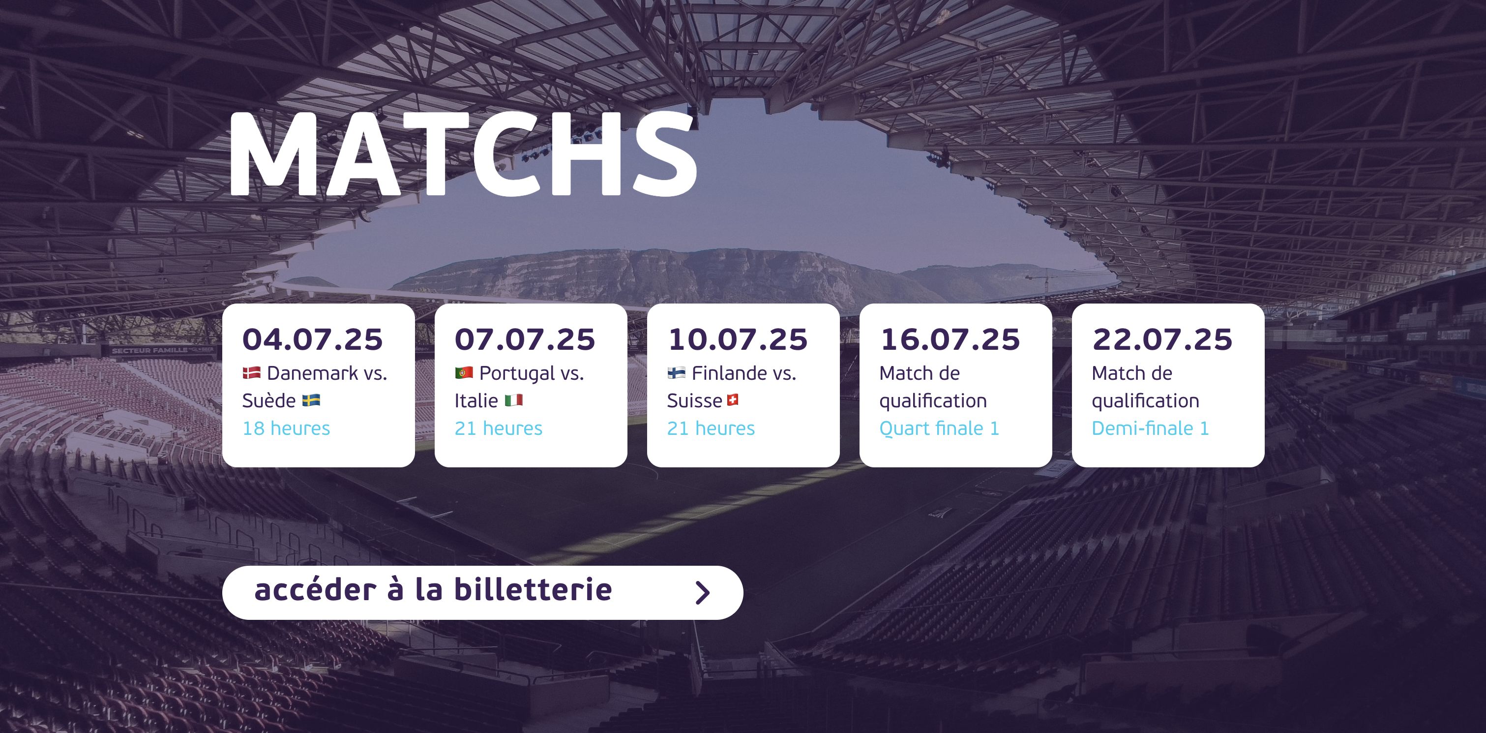 Le vendredi 4 juillet 2025 approche à grands pas ! Deux jours après l’ouverture de l’Euro 2025, cette date marquera le jour du premier match de la compétition au stade de Genève. Au total, 5 rencontres se tiendront dans notre ville. Rappel des affiches ci-dessous.