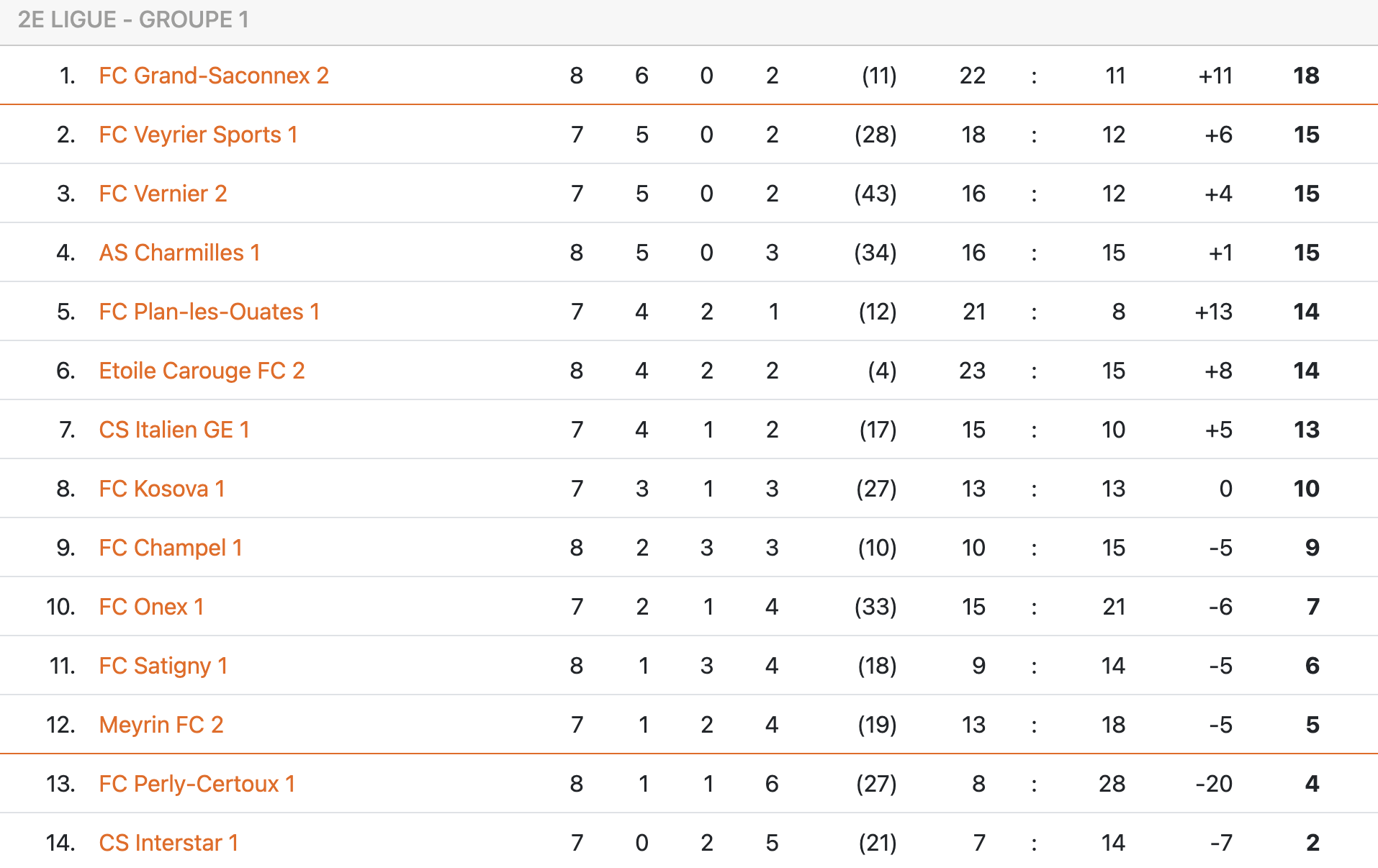 Prochains matchs pour les deux équipes : Champel – Etoile Carouge II et Satigny – Kosova (dimanche 19 octobre, 11h et 15h30).