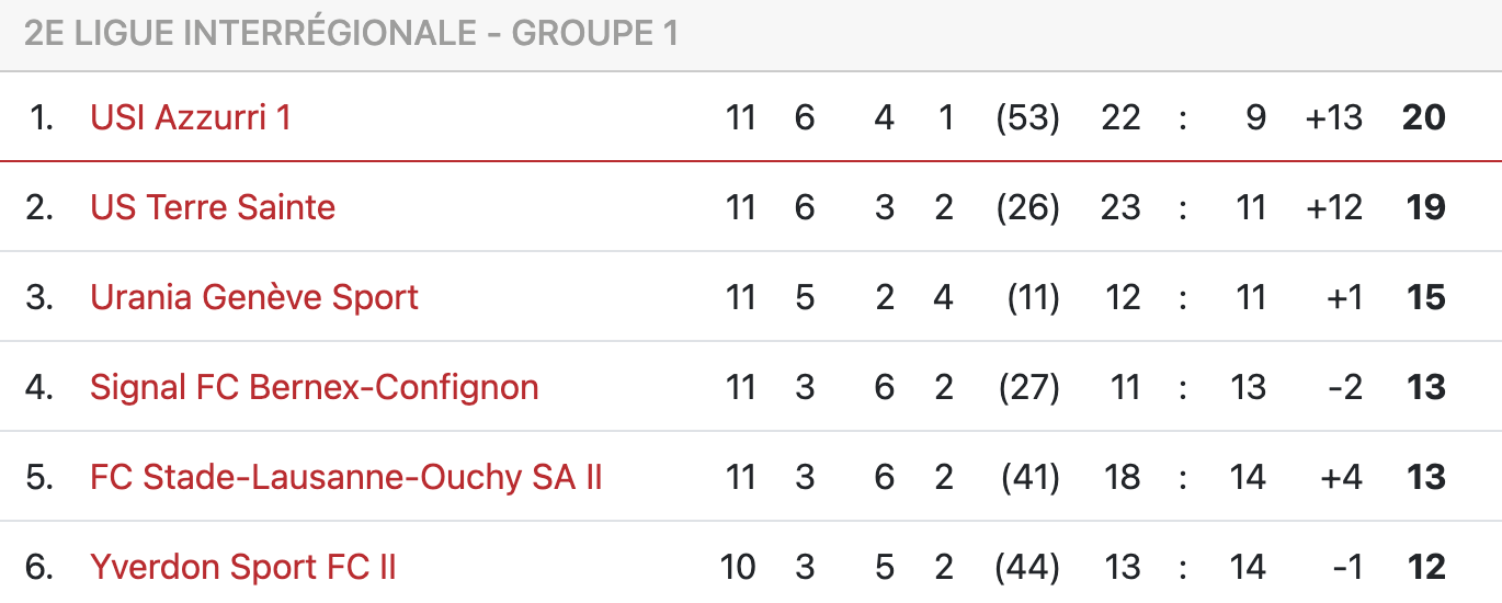 Une montée en puissance qu’Ivan Blanco explique ainsi : “On n’a pas eu de période de préparation avant le championnat. Donc, les premiers matchs de championnat ont servi de préparation […]. La mayonnaise a vite pris”. Véritable exemple de maîtrise, Azzurri mérite sa première place et peut espérer la garder en tout cas jusqu’à la pause hivernale (trois matches restants : Collex, Echichens et SLO).