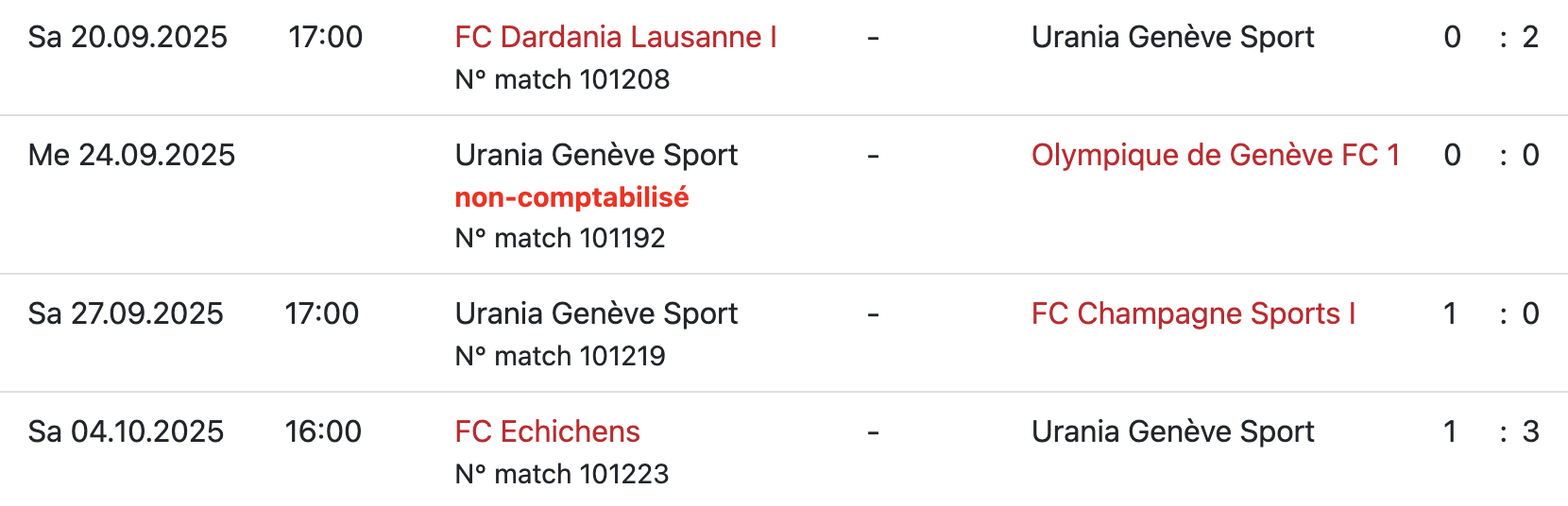 Après Dardania, Champagne et Echichens, UGS visera donc un quatrième succès d’affilée face à Terre Sainte, la machine à buts vaudoise. Un test grandeur nature pour mesurer la solidité retrouvée du groupe d’Uros Cetkovic, qui semble enfin avoir trouvé la bonne formule entre engagement, cohésion et efficacité.