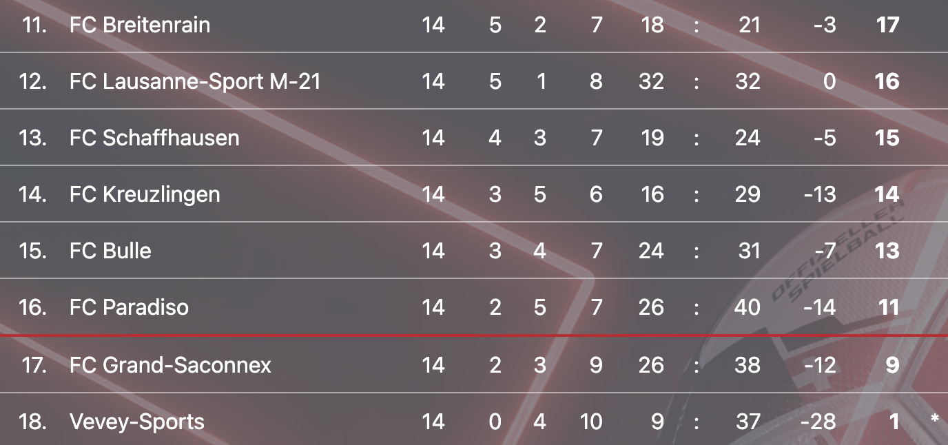 Les pensionnaires du Blanché sortiront-ils de la zone rouge avant Noël ? Il reste trois matchs : Lucerne M-21, Schaffhouse (à la maison) et Zurich M-21, avant le 1/8 de finale de Coupe de Suisse de gala du 4 décembre prochain au Parc Saint-Jacques contre Bâle.