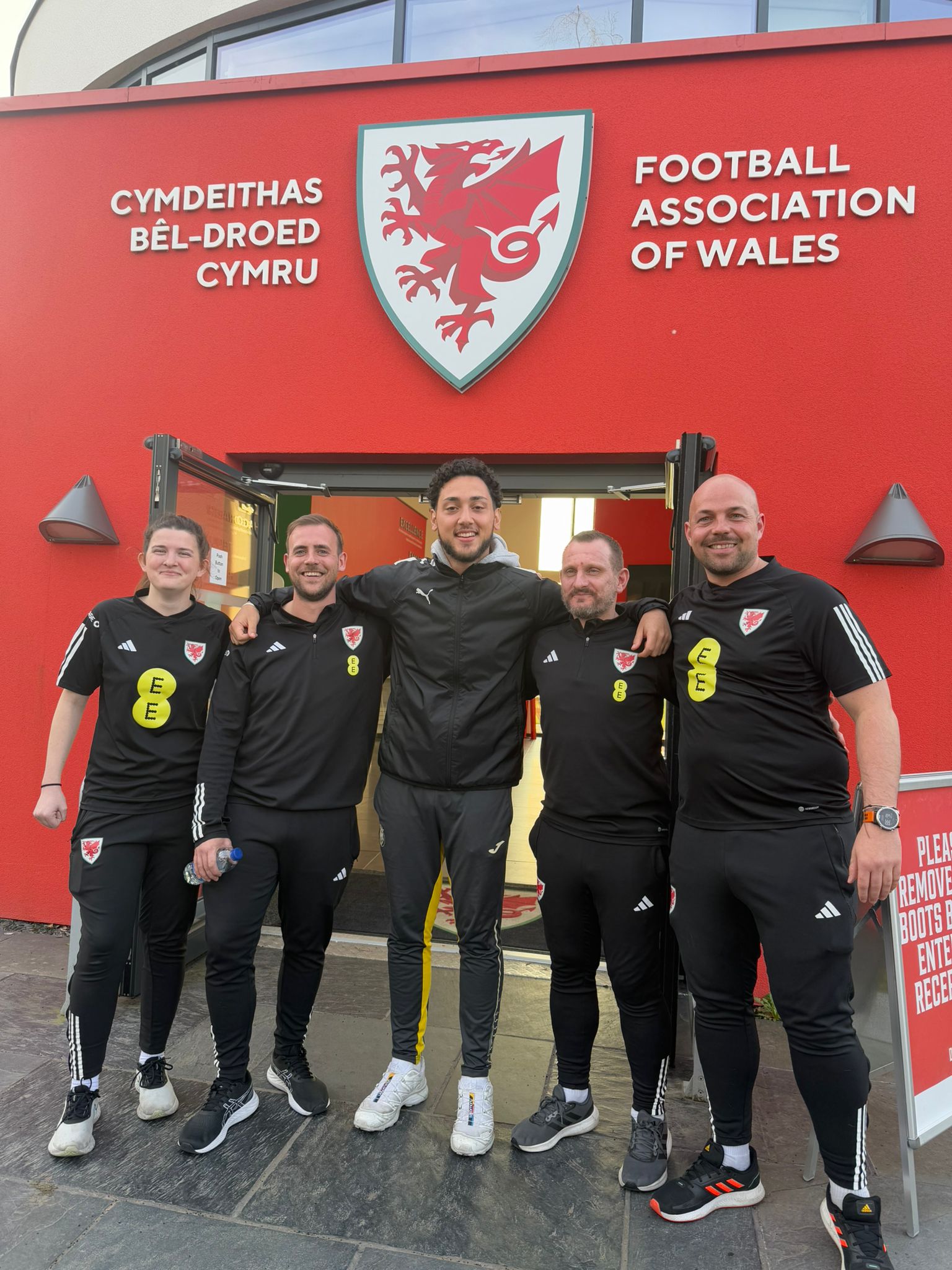 Kris O’Hare (2e depuis la gauche) et Luca Sciuto (au centre) avec d’autres membres du staff de l’académie de Villarreal.