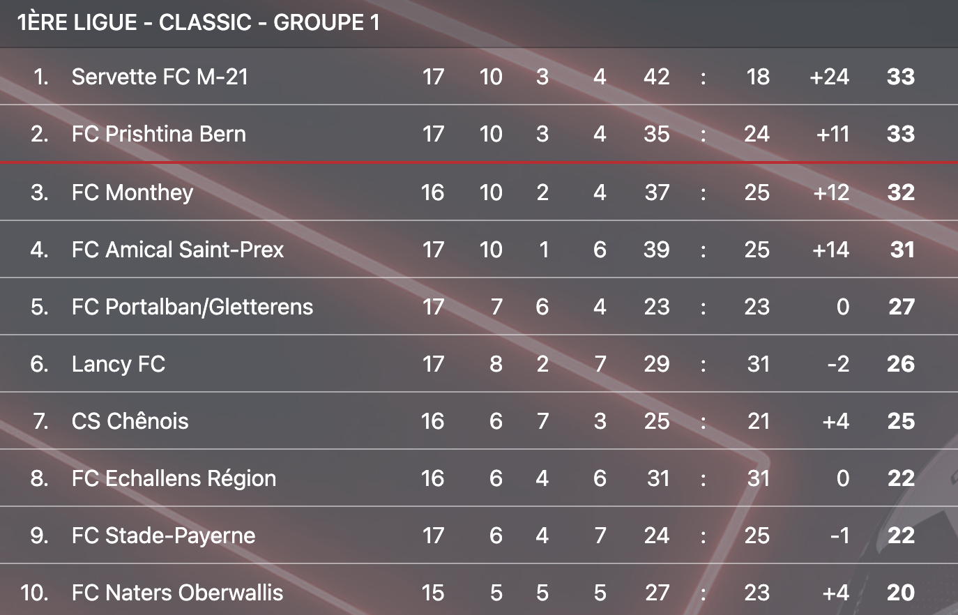 Echallens (4-3-3) : Kostadinovic – S.Gomes ©, Chavanne, Özcan, D. Dos Santos – Morard, Jaton, Rochat – Lopez, Bersier, Ali