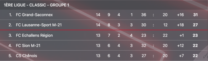 L’équipe du Blanché devait se rattraper après la défaite face à la lanterne rouge Pully de la semaine passée. Mission accomplie pour les hommes de Jean-Michel Aeby, qui gardent une avance de 4 points sur leur dauphin Lausanne M-21. A une journée de la fin du premier tour, ils ont même assuré leur titre honorifique de champion d’automne.