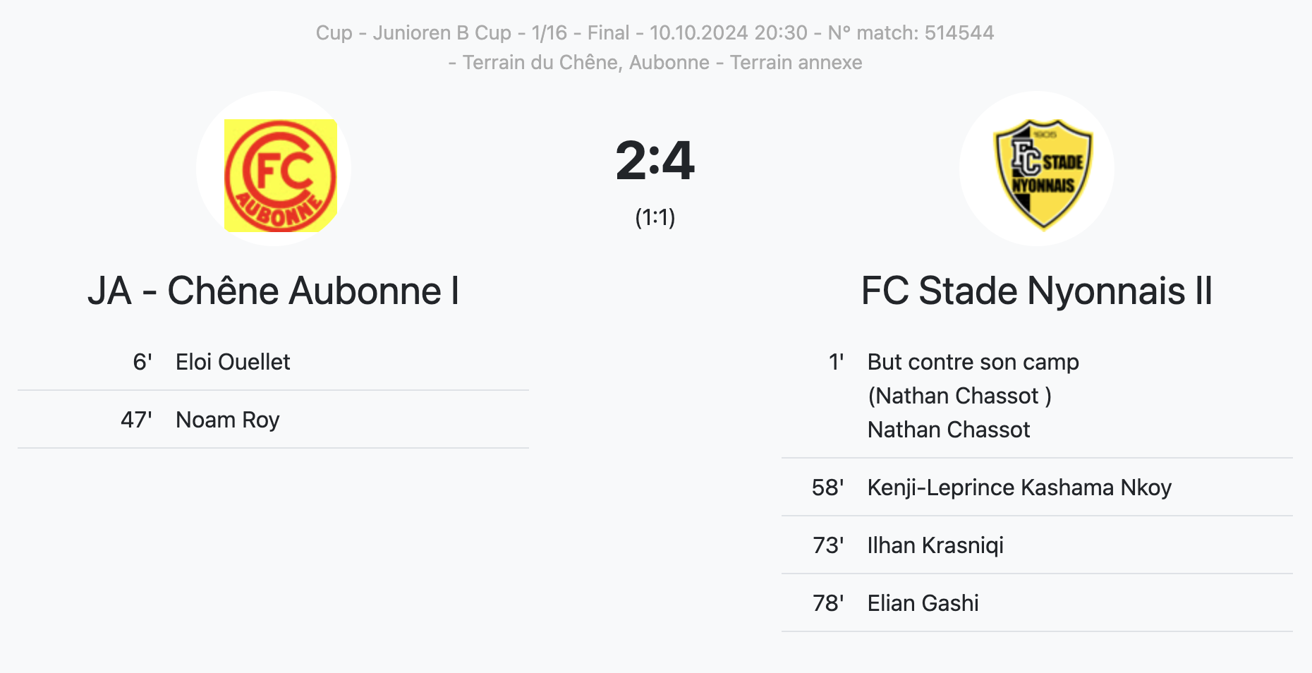 La deuxième surprise a été signée par le Stade Nyonnais II. La troupe de Sofian Ben a sorti Chêne Aubonne ! Les Nyonnais ont su être meilleurs pendant la deuxième partie de match en faisant trembler les filets à 3 reprises (58′, 73′, 78′). En fin de match, 4 joueurs ont écopé d’un carton jaune en 2 minutes, dont 3 de Nyon : le match s’est donc fini à 10 contre 8 !