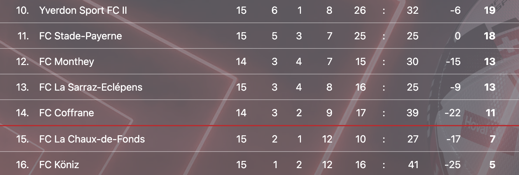 Il reste aux deux équipes un seul match à disputer avant la longue trêve hivernale. Echallens tentera de prolonger sa série victorieuse sur le terrain de Köniz samedi 23 novembre à 16h, alors que La Sarraz, comme déjà mentionné, accueillera Coffrane dimanche 24 novembre à 15h. Un match à ne pas perdre !