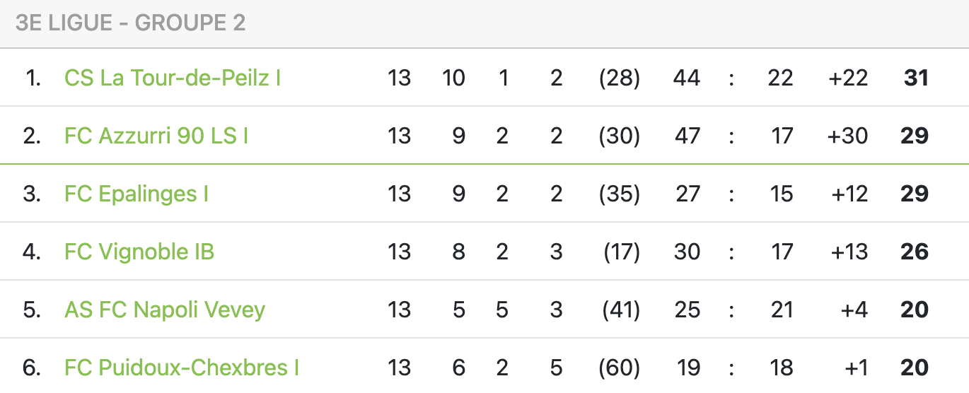 C’est très logiquement que l’équipe qui a le plus créé de danger a remporté la rencontre, permettant à Epalinges de prendre l’avantage sur le FC Vignoble et de se hisser à la 3e place, à égalité de points avec le deuxième, Azzurri, à 29 points. De son côté, le FC Vignoble descend de deux places au classement et s’éloigne ainsi des finales de promotion, même si tout reste très serré.