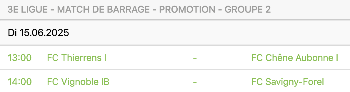 La deuxième meilleure équipe de cette 3ème ligue, Thierrens, a hérité de Vignoble, qui a réalisé une grosse surprise en passant devant Azzurri Lausanne au finish. Les Thierrainais affronteront également Chêne Aubonne, premier du groupe 1. Ils retrouveront également Savigny-Forel, déjà deuxième de son propre groupe. Michaël Mirante, responsable des actifs de Chêne Aubonne, a adopté un discours offensif. “Pour monter, il faut partir avec l’objectif de gagner les trois matchs. Le but est d’être promu et de se stabiliser en 2e ligue.”