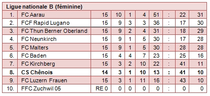 FC Kirchberg   –   CS Chênois   3 – 1  (15ème journée, samedi 17 mars)