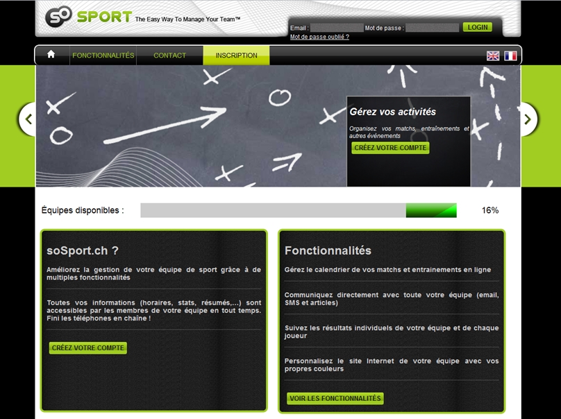 soSport.ch vous offre la possibilité de créer le site internet de votre équipe de football et a pour but de faciliter grandement la communication et la gestion d’une équipe de sport. « Nous avons créé soSport pour répondre à un besoin spécifique identifié grâce à notre équipe de football qui souhaitait disposer de son propre site internet à moindre coût »,  nous communique Nicolas H., co-fondateur de soSport.ch