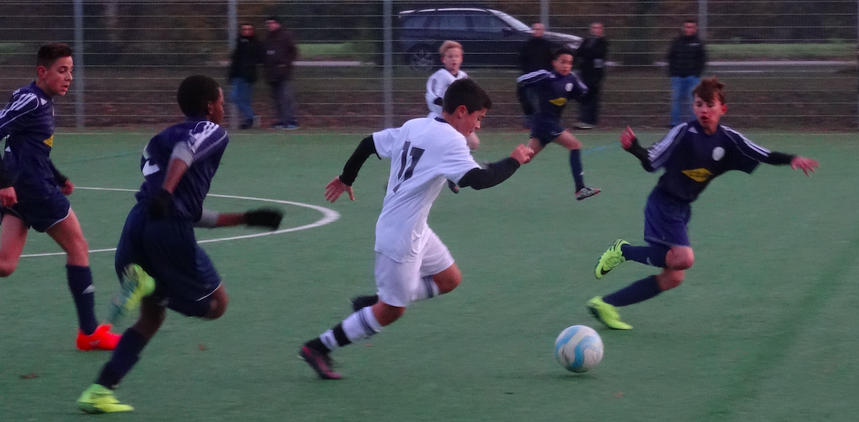 Le Team ACGF-CS Chênois recevait samedi en fin d’après-midi Etoile Carouge pour l’avant dernier match du premier tour du championnat FE-13. Une catégorie de jeu dans laquelle la progression individuelle et le développement personnel sont privilégiés, comme le confirment les objectifs fixés par l’entraineur visiteur Grégoire Sutter avant le match : « En préambule et comme durant l’ensemble du premier tour, j’ai insisté sur la prise d’initiative de chacun de mes joueurs. Il est essentiel que ceux-ci fassent preuve de caractère et de créativité sur le terrain. Ce sont avant tout ces aspects qui sont mis en avant dans cette catégorie et non pas la jouerie collective ». Ces consignes donnent place le plus souvent à des parties débridées avec du spectacle et de nombreux buts à la clé.