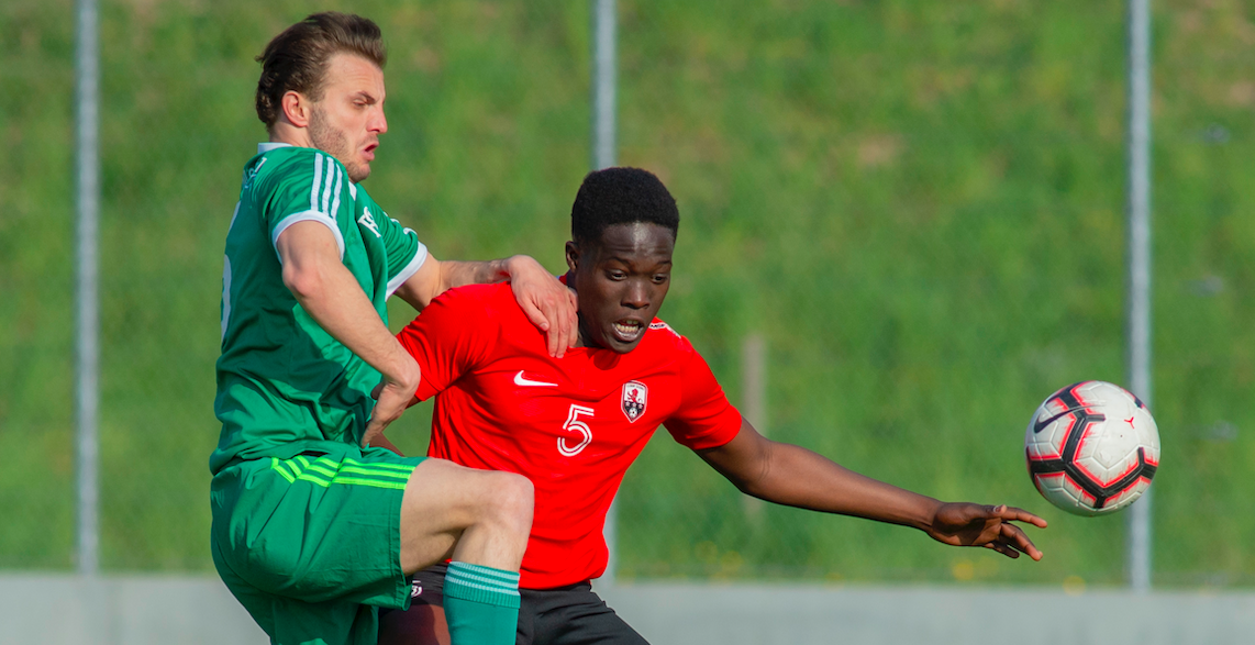 Conscients de l’importance de ne pas se louper, les locaux débutent très fort avec une volée de Marwan Waheishi qui passe tout juste à côté (4′). Toutefois, après ce premier éclair de Grand-Saconnex, le match s’équilibre et perd rapidement en intensité. Les deux équipes semblent avoir peur de prendre trop de risques et manquent par ailleurs de précision dans la transmission du ballon. D’un côté comme de l’autre, les occasions sont inexistantes pendant une bonne partie de la première période.