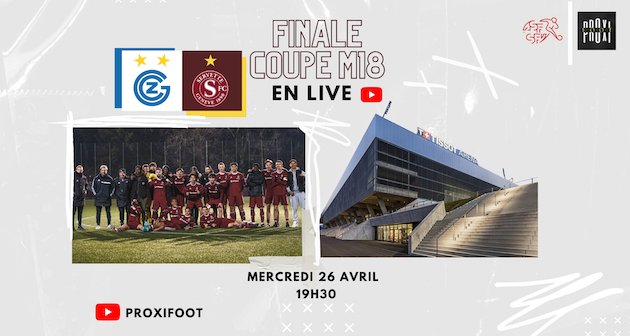 La finale de Coupe Suisse M18 GC-Servette sera à suivre en direct commenté sur la chaîne YouTube de Proxifoot dès 19h25.