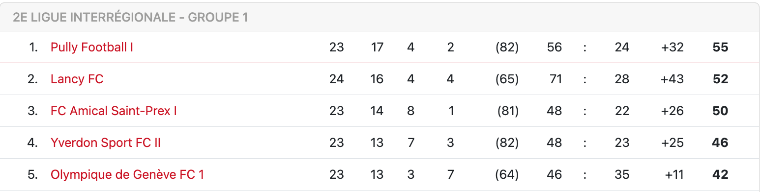 Il s’agit incontestablement d’une très mauvaise opération pour Lancy dans la course à la promotion. La deuxième place est désormias plus qu’incertaine, Amical Saint-Prex se trouvant à deux points avec un match en moins. Le leader Pully compte lui 3 points d’avance, toujours avec un match en moins. S’ils veulent retourner en 1ère ligue, les joueurs de Marignac devront oublier ce faux pas et reprendre leur marche en avant avec une rencontre cruciale face à Yverdon-Sport II la semaine prochaine.