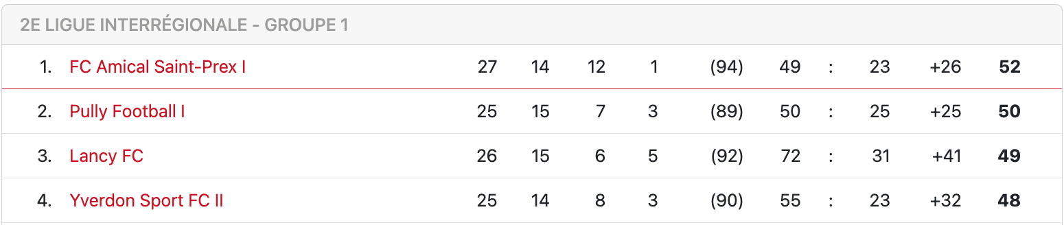 Lancy a fait le job avec brio lors de cette vingt-sixième journée. Dans l’attente des résultats dominicaux de Pully et Yverdon II, concurrents dans la course à la promotion, une chose reste cependant certaine : pour avoir une chance de terminer dans les deux premiers, il faut absolument remporter les deux dernières rencontres. “Les comptes, on les fera à la fin”, a conclu Martin Liechti. Les Lancéens iront à Nendaz, puis termineront à la Bâtie contre CS Italien. Deux matchs face à des équipes qui évolueront en deuxième ligue dès la rentrée.